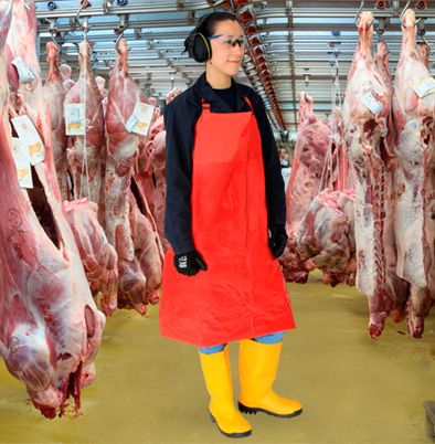 Delantal en frigoflex ( especial para alimentos) con refuerzo o sin refuerzo, colores rojo, blanco y amarillo