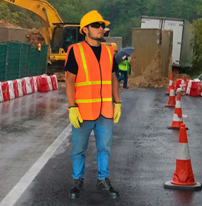 Chaleco triangular malla 4 X 1 con cinta reflectiva en pecho y espalda.