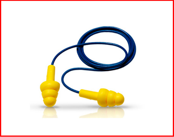 Protector auditivo tipo tapon Ultrafit NRR 25dB con cordon y estuche. Premoldeados de tres bordes. Es lavable y reutilizable.